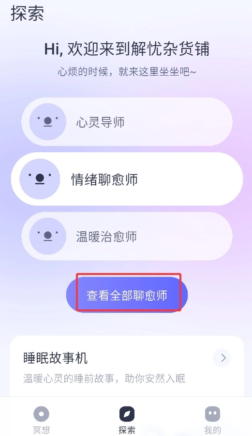 3、通过探索功能,可查看全部聊愈师资料并选择适合的辅导服务。