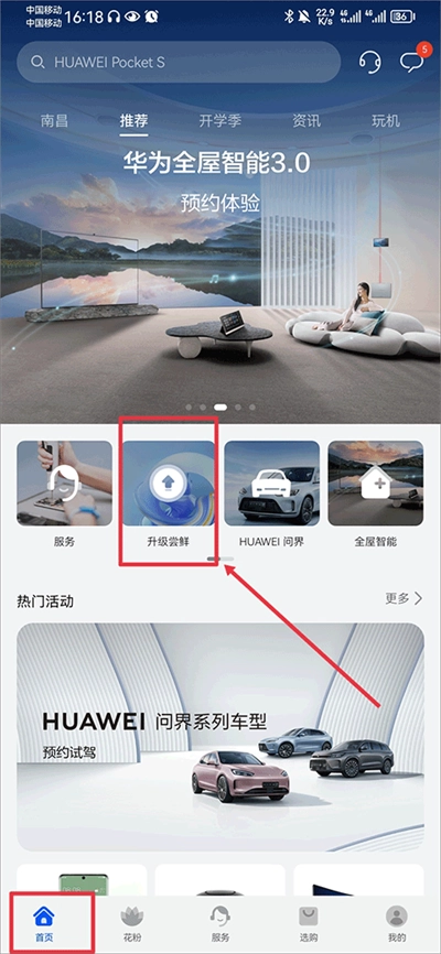 1、打开,在首页中点击升级尝鲜;