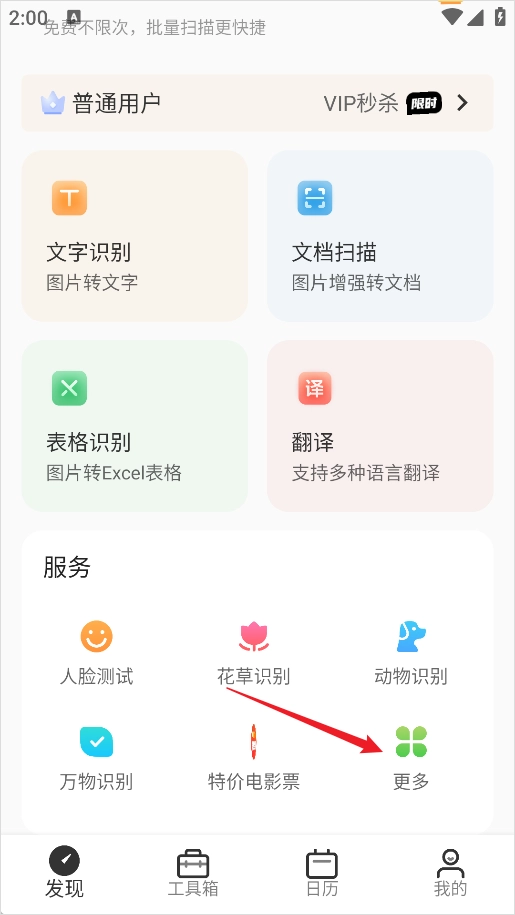 1、启动洋果扫描王应用,进入首页后,点击界面上的“更多”功能选项。
