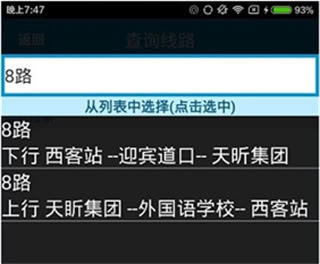 4、 选定方向后,能够清晰列出从始发站到终点站之间依次经过的所有停靠站点名称。