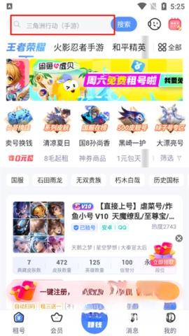 1、{打开应用程序,搜索您想玩的游戏以开始租号之旅。}