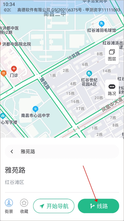 3、待搜索结果页面加载完毕,点击“线路”选项,即可进入规划界面。