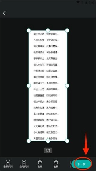 4.在图片编辑界面选定识别范围,可选择全部识别或自动识别,点击“下一步”即可启动识别
