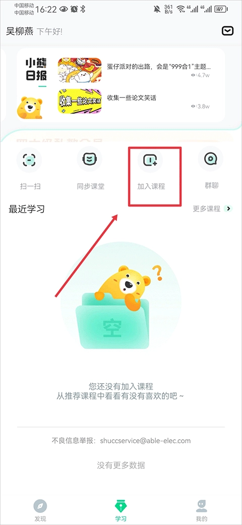 1、打开这款软件,在学习界面中点击加入课程