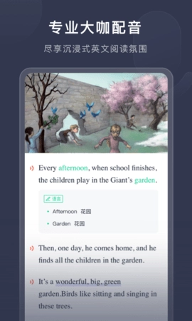 3、软件内还配备了由各领域专业大咖打造的英语配音阅读内容,能让用户沉浸于英文阅读的氛围之中,收获丰富且有趣的英语阅读体验。