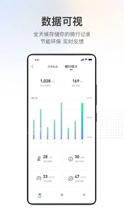 1、车况:电量及预估里程、安防定位、远程操控、智能体检、历史轨迹、骑行统计、智能设备;