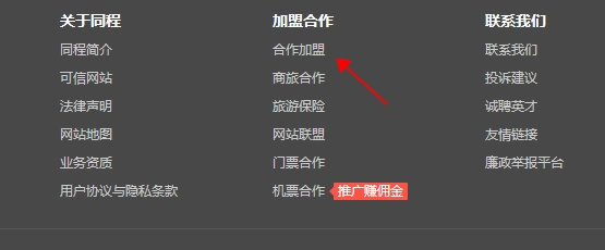 可以前往手机或电脑浏览器上登录同程旅行,在打开的页面点击下拉页面至最底部,点击【合作加盟】