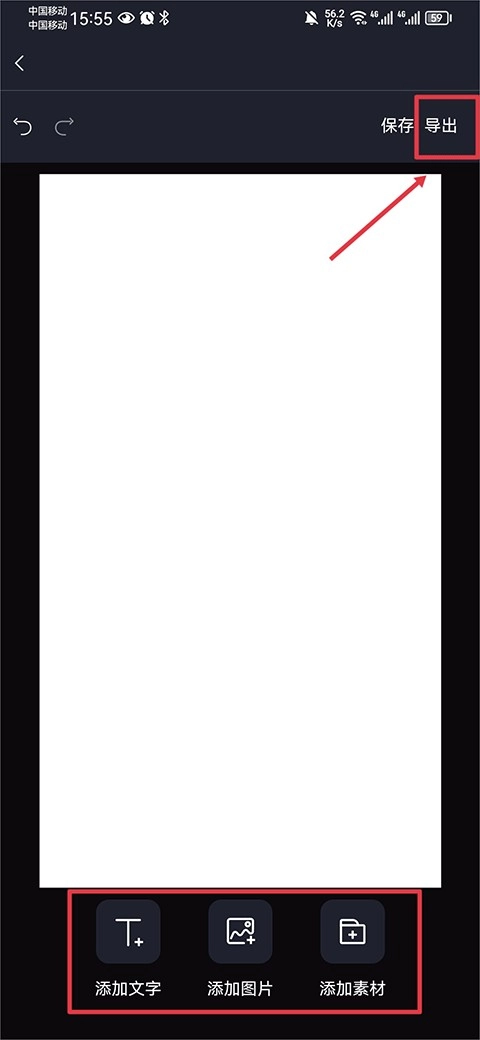 5、空白模板新建完成后,依旧可以借助添加文字、添加图片、添加素材这三个工具,设计出自己心仪的图片并进行导出。