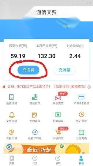 2、在“手机充值”页面点击“充话费”。