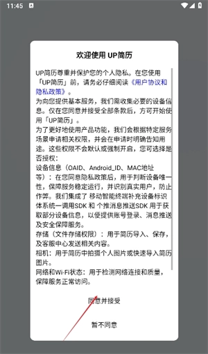 1、打开软件首先同意相关隐私政策。
