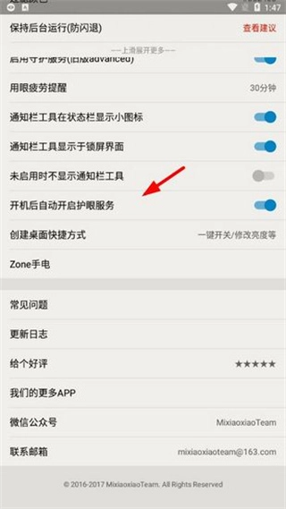4、最后一种是开机自启模式,选择该模式后,只要手机处于待机状态,它就会自动在后台运行,以此来呵护你的视力。