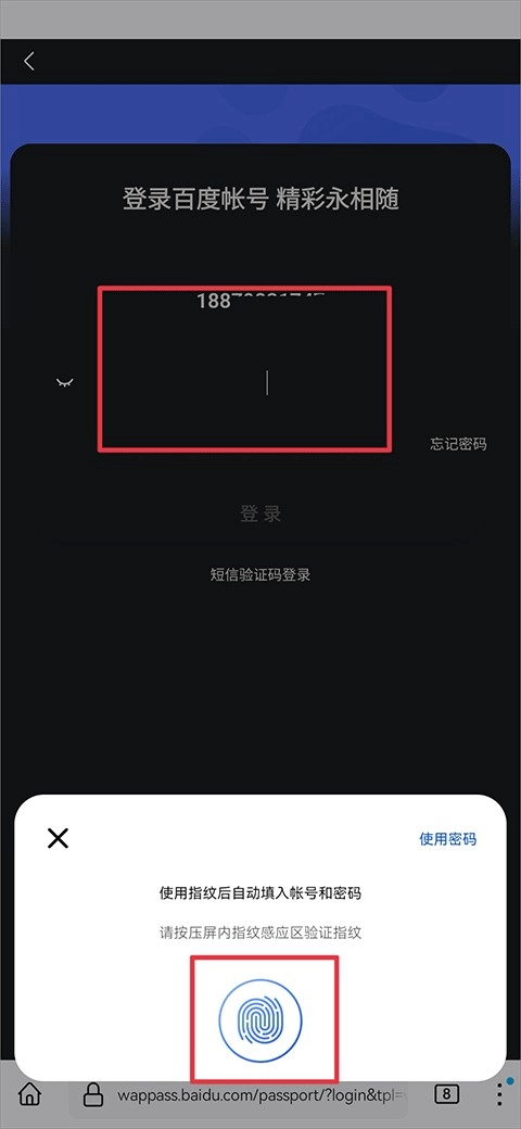 4、最后在百度网站中进行登录账号时,使用指纹验证后就会自动添加账户和密码了
