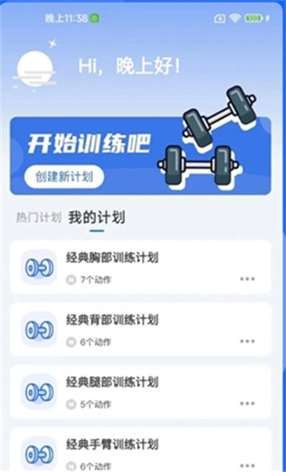1、用户可在此通过软件创建专属健身训练计划,并依据该计划开展健身运动。