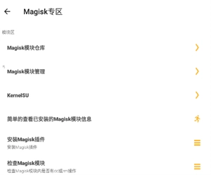 2、启动软件后,依据实际需求挑选对应的功能模块,例如Magisk专区。