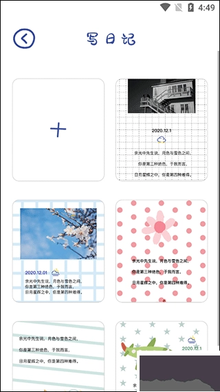 1、打开emo日记本,点一下中间那个“+”号,马上就能开写。
