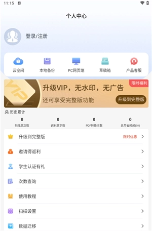 2、进入首页,可直接使用文档扫描、文字识别等功能。