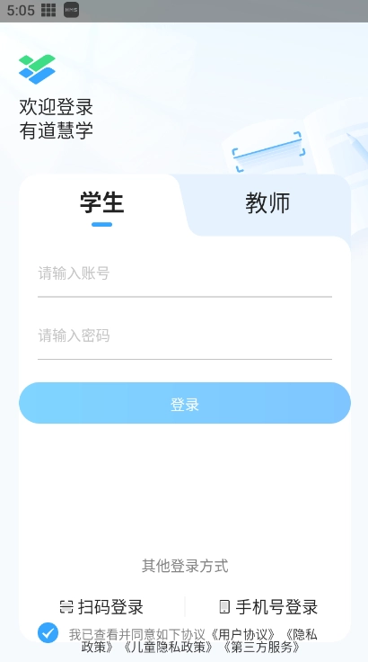 1、打开软件,根据你的身份选择学生或教师端进行登入