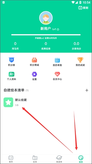 4、我们所有收藏的绘本都会保存至“我的”页面中的默认收藏里,方便随时查看。