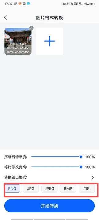 3、选择你想要的图片格式,点击开始转换;