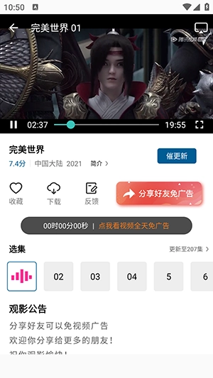 3.设有标清、高清、超清三种画质选项,处于流量环境时能够切换到标清模式,单集视频的流量消耗可减少到50MB以内,有助于移动网络用户节约流量费用。