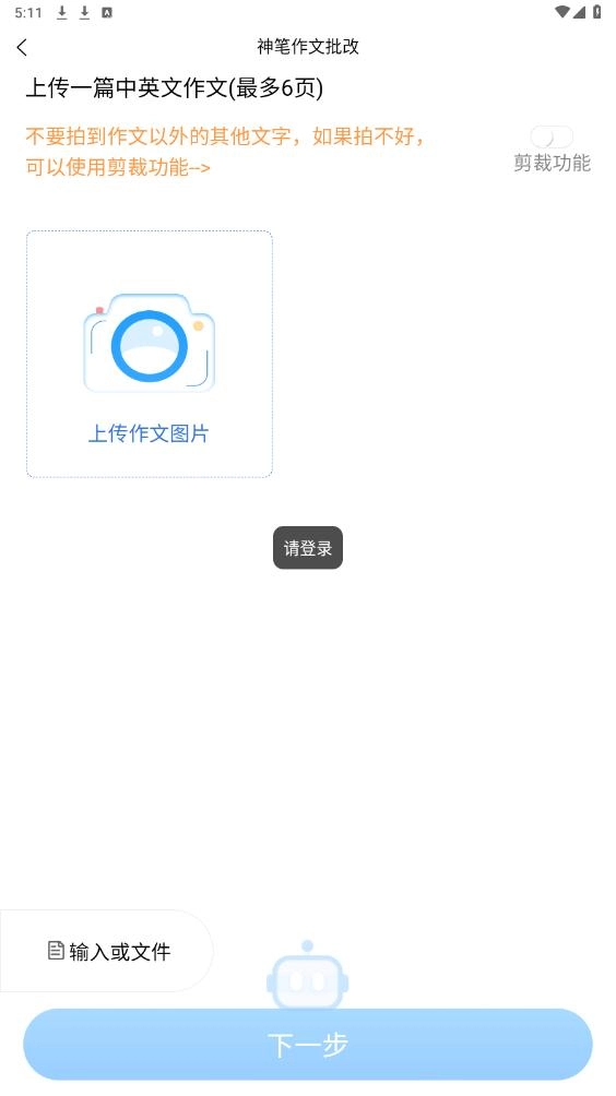 点击上传作文图片,下一步即可批改作文