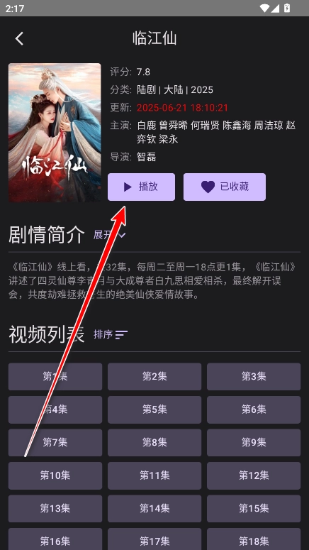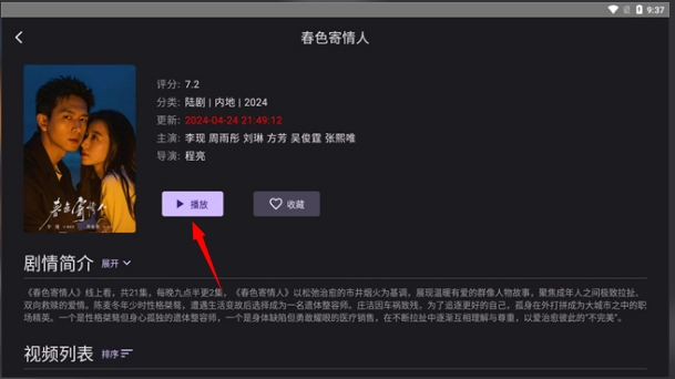 2、在搜索结果中找到目标节目,点击"播放"按钮即可开始观看。