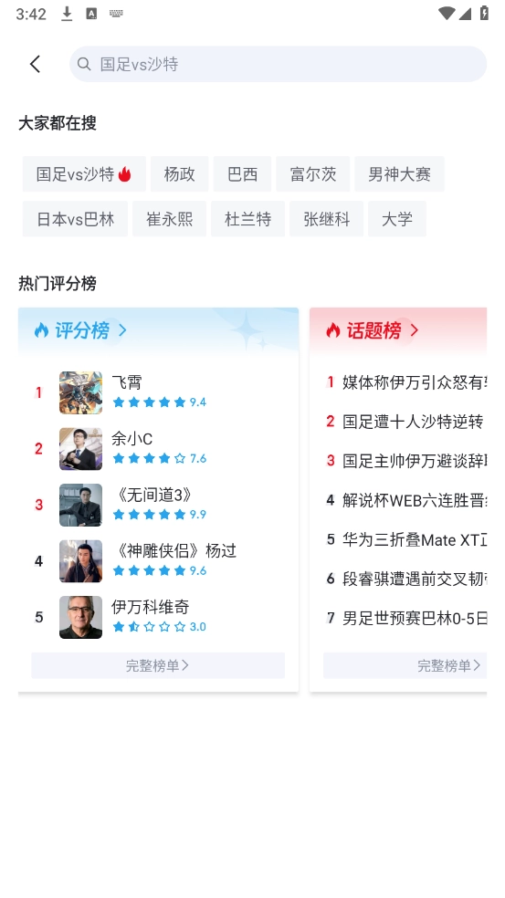 4、进入“评分”页面后,便能看到影视、游戏、小说等各类内容的评分,为你呈现最真实的评价。