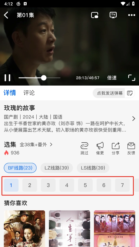 5、用户直接点开想看的影片,选择集数以及播放源即可免费追剧。