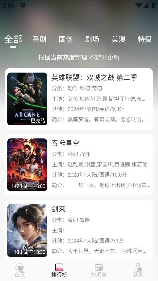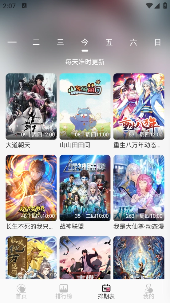 4、排期表会展示每天的动漫更新情况,你可以关注自己喜欢的动漫。