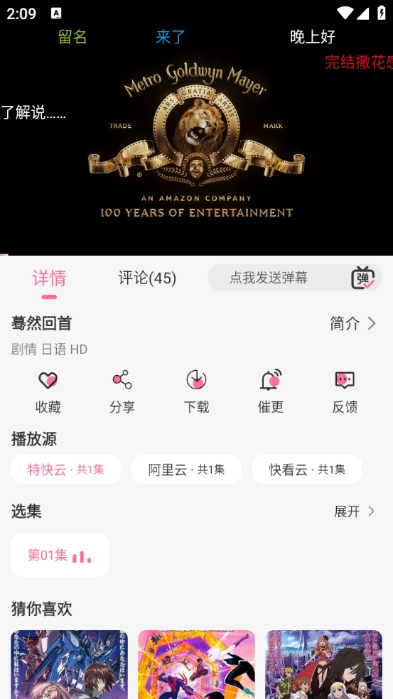 6、打开想要观看的动漫后,能够挑选集数、更换播放源、开启弹幕等。