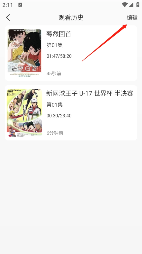 1、在首页点击右上角的观看历史。