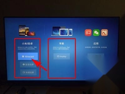 2、接着我们进入设置选择界面,能看到有两种无线连接功能,一种是适配安卓/小米设备的Micracast无线连接,另一种是苹果手机适用的Airplay功能,这里我们选择前者——安卓手机的Micracast连接。