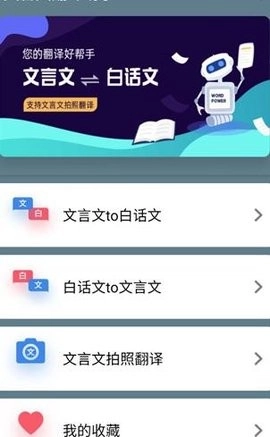 1、打开手机上的文言文翻译器,选择我们需要的翻译功能,比如文言文to白话文。