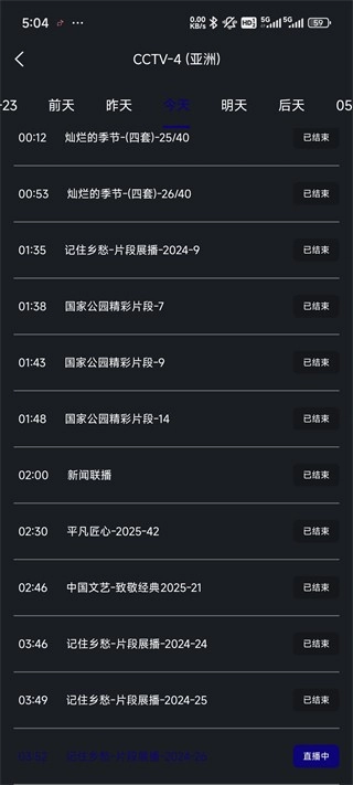 4、当然软件内肯定是少不了节目单的这里可以看到xxx节目在不在直播什么时候结束。