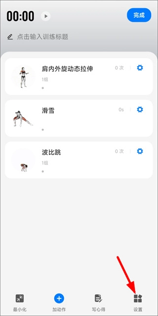 5、把训练动作添加到计划里后,点击右下角的设置,选择保存并返回,就能在训练首页看到训练计划了。