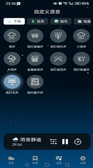 声音混合:可以自由组合不同声音,打造专属于自己的“助眠背景”。