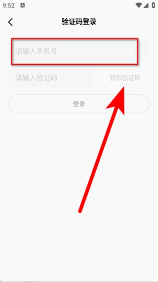 3、在登录页面,输入手机号后,点击获取验证码。