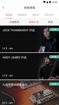 3、系统会对各类吉他课程加以分类整理,用户能够在平台上挑选合适的课程开展学习。