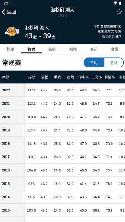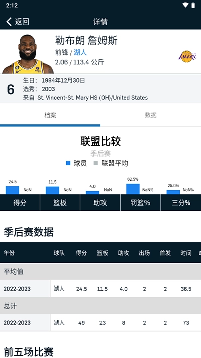 5、最后点击球员,如图,就可以查看对应球员的数据详情。