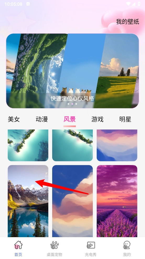 2、在首页根据分类选择喜欢的壁纸并打开。