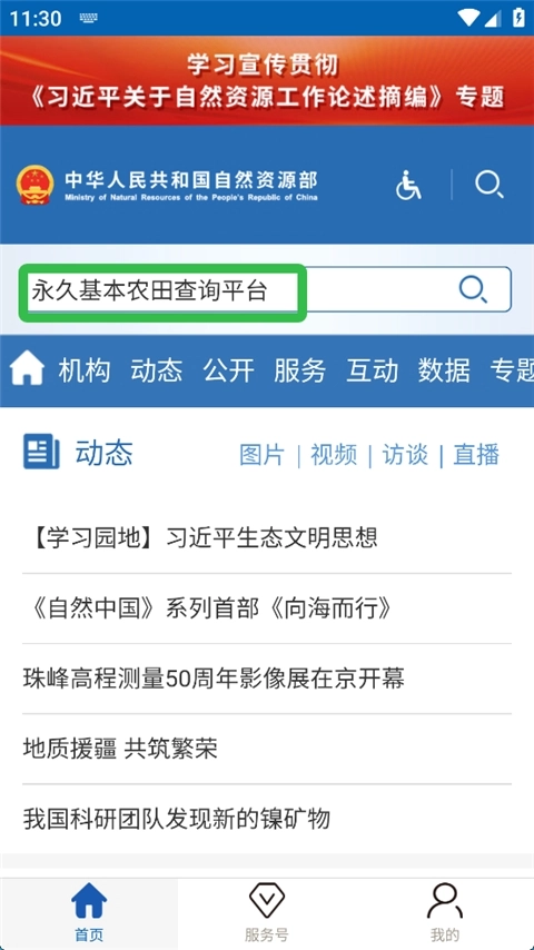 1、进入自然资源部App中,点击右上角搜索标识。