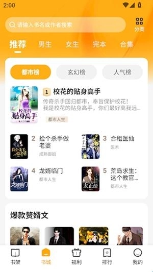1.书城中提供了丰富的榜单和分类,能快速找到想看的小说