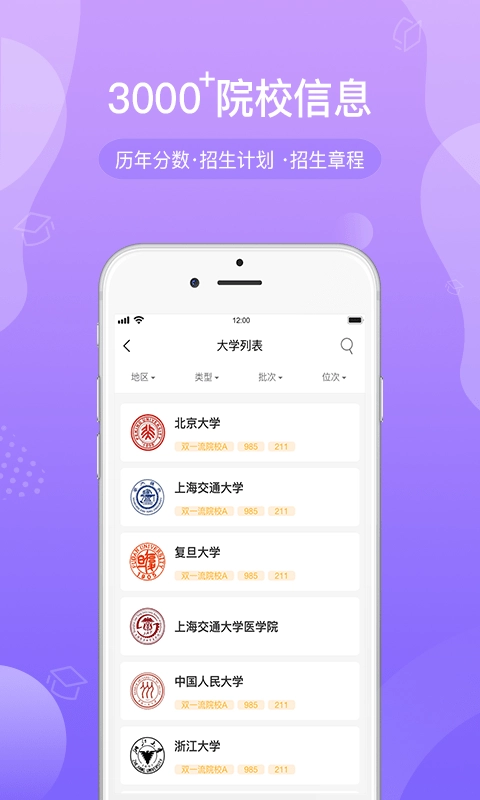 2、为你提供全国各地的院校信息介绍,查找院校历年的招生分数线数据信息