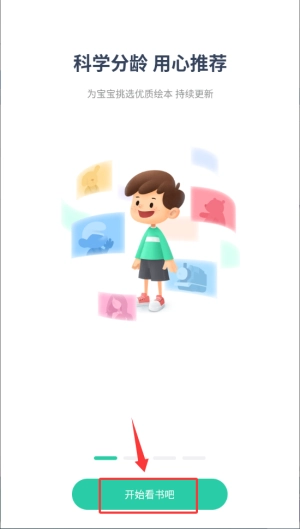 1、首次启动应用,请在推荐页面点击开始看书吧。