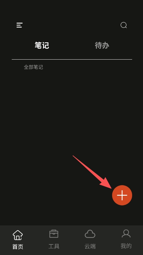 2、进入我的板块,点击红色加号,可创建笔记或待办。