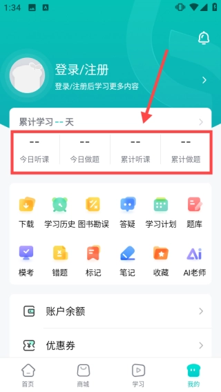 3、最后就是我的界面,在这可以清楚的看到自己的一个学习情况