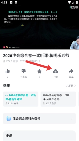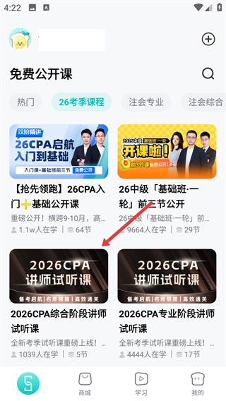 2、在26考季课程里,我们选择【2026CPA讲师试听课】,进入课程详情页面呀。