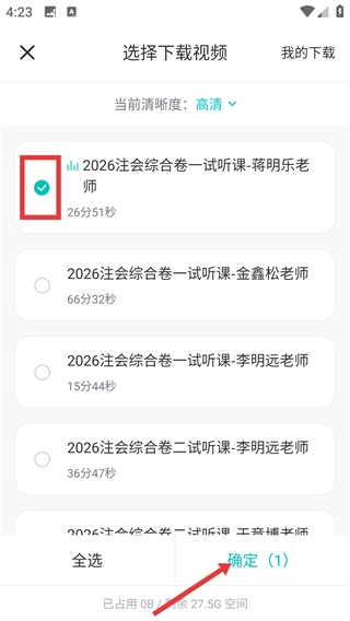 4、在选择视频界面,勾选要的课程,点击【确定】,就能开始视频啦。