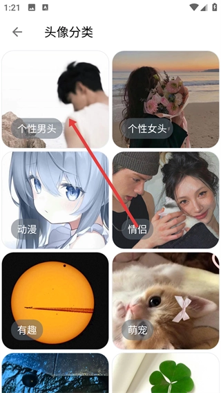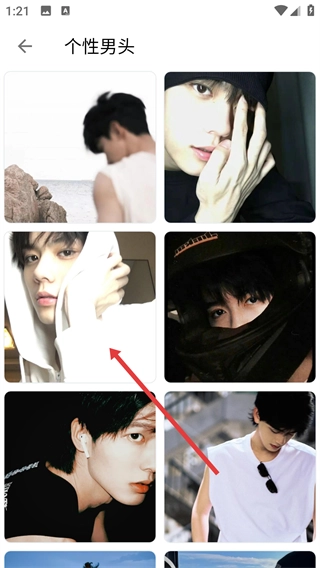 2、在头像分类页面,点击【个性男头】分类选项,即可进入个性男头的头像列表页面。