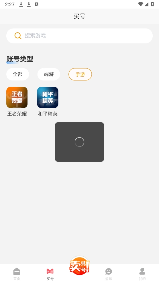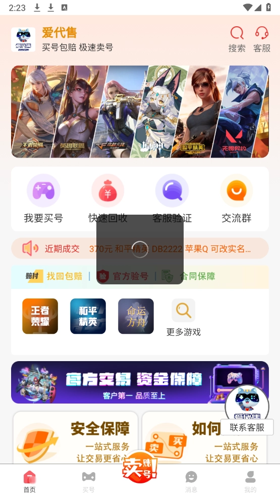 2、进入首页,可以看到很多的游戏账号,包括端游都有。
